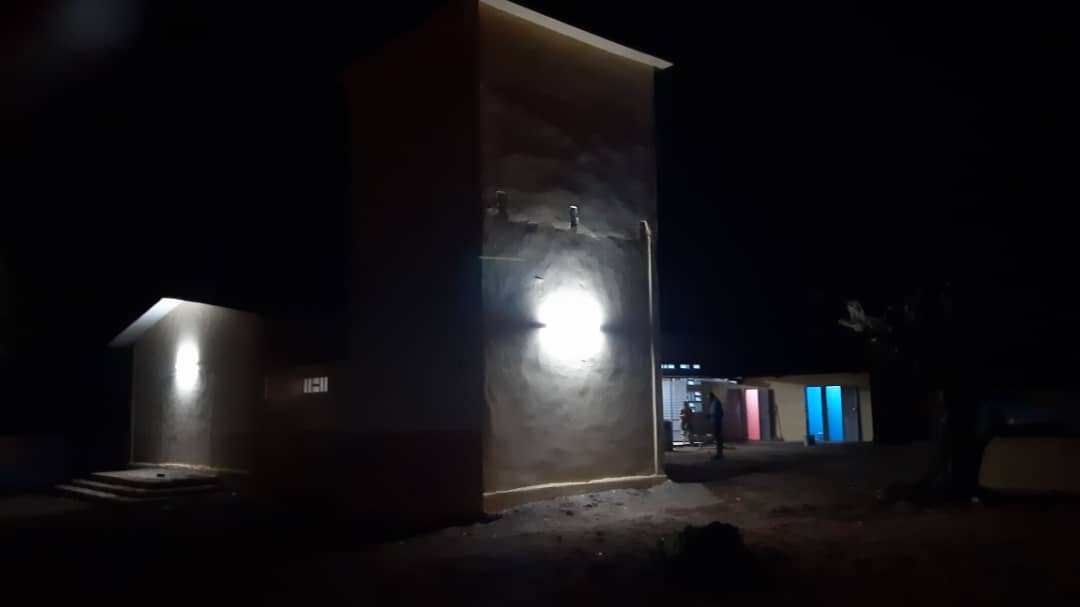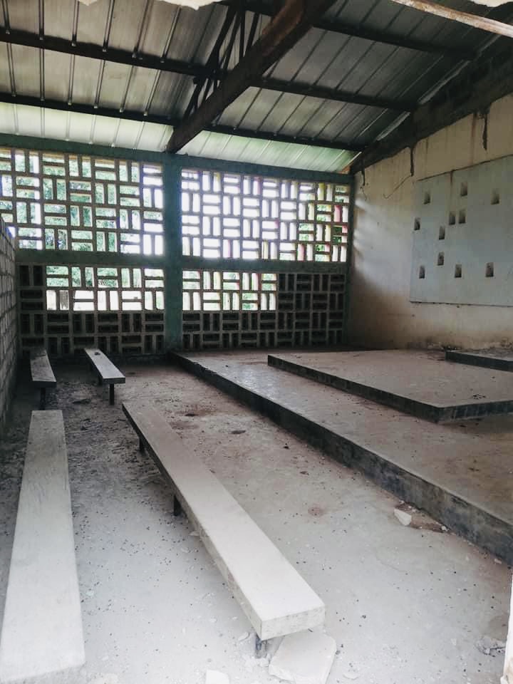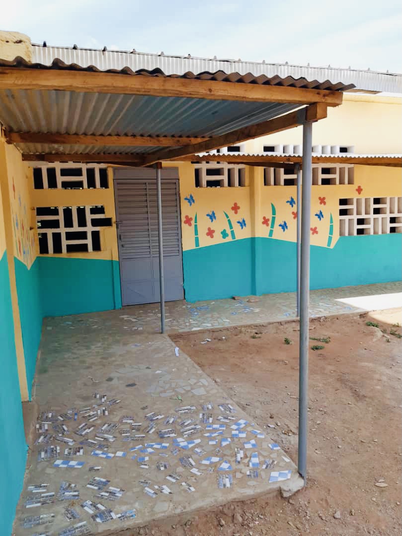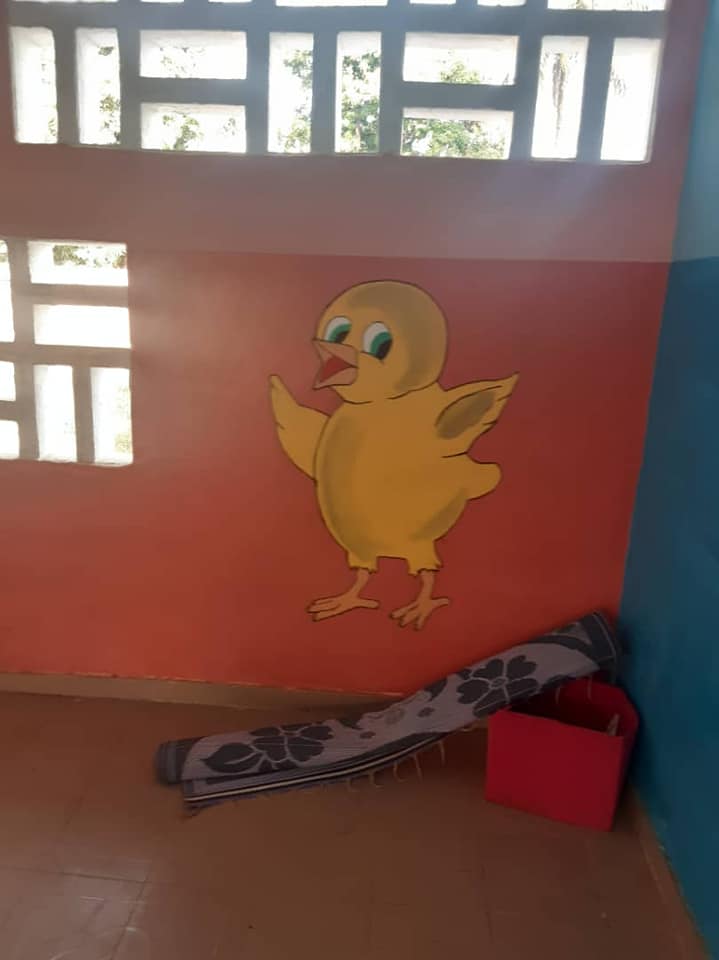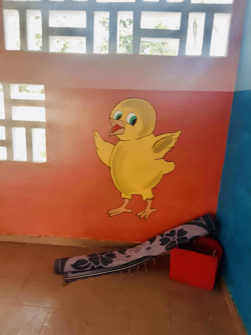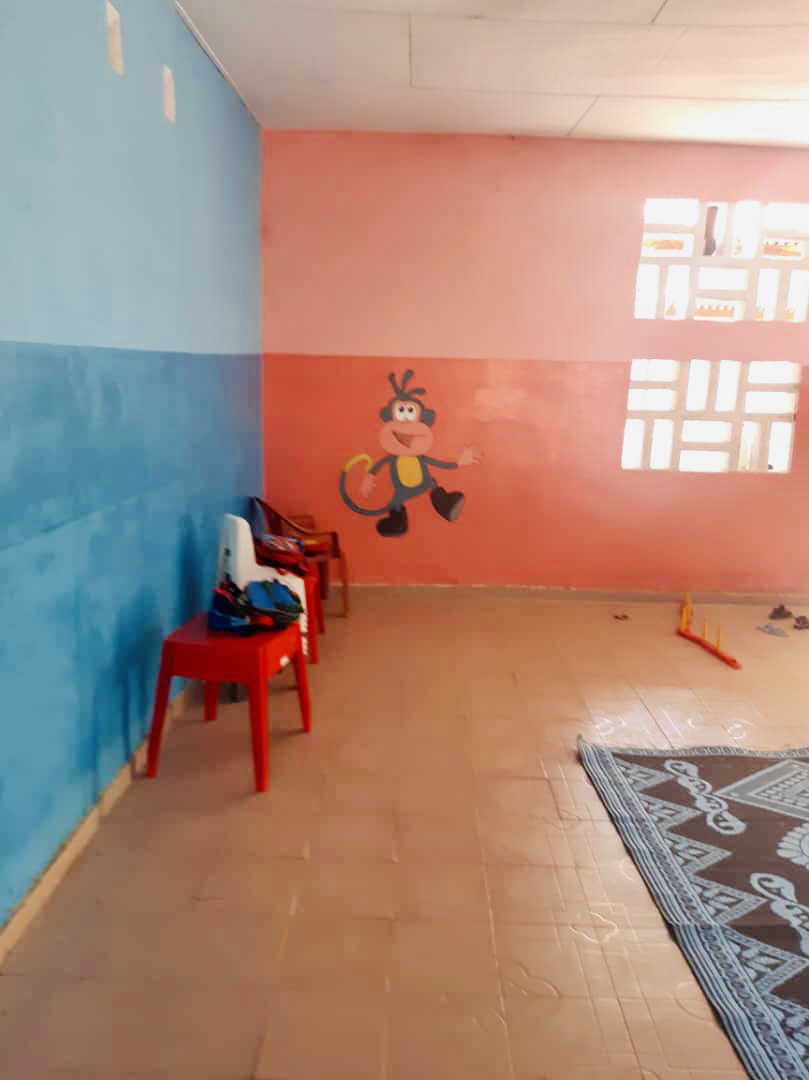 Sono presenti 3 aule, 2 uffici, 4 bagni e 1 magazzino, il tutto circondato da 1500 mq di terra recintata, per garantire la sicurezza dei fanciulli.